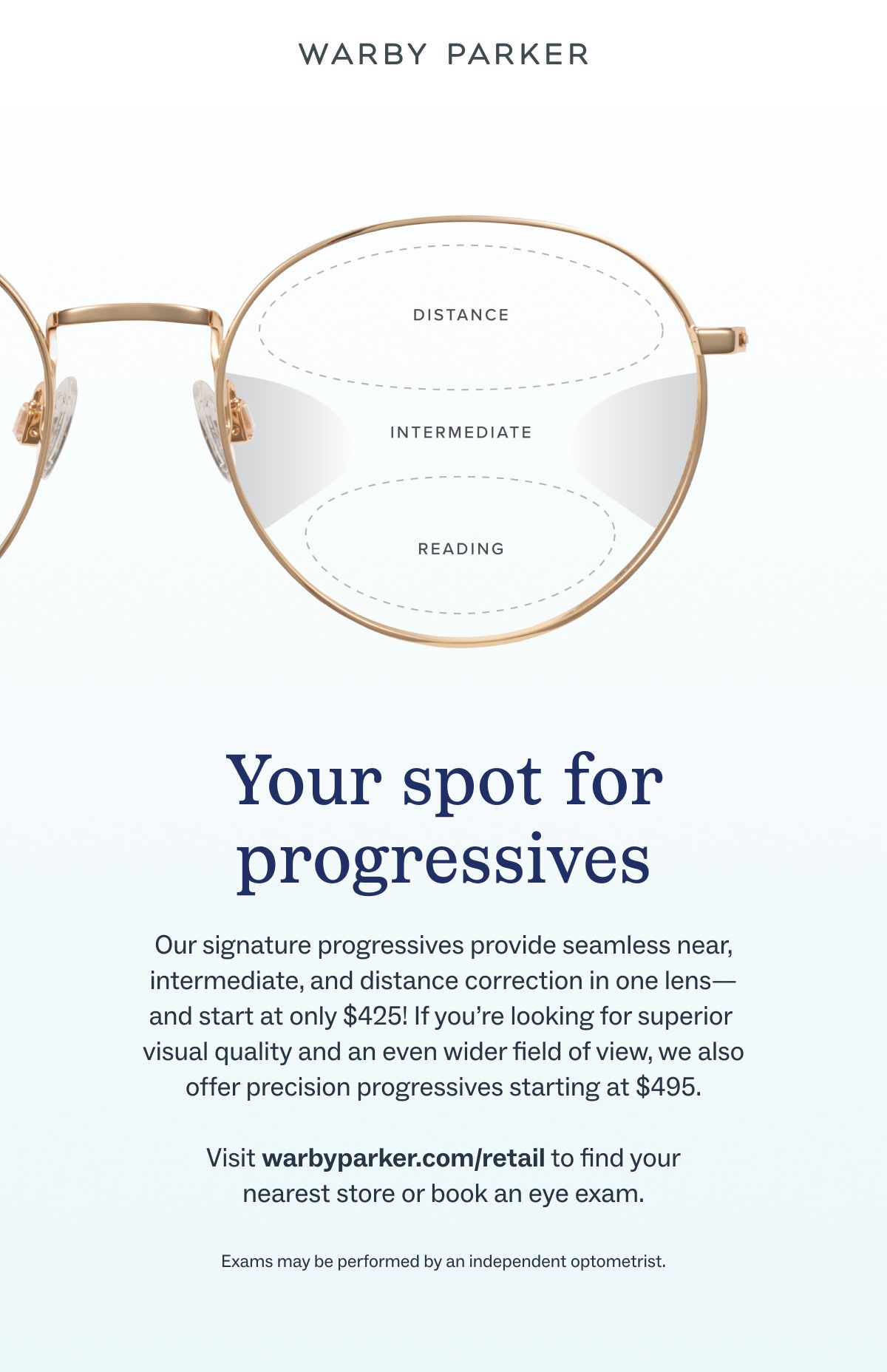 Tue, 10 Feb 2026 - Thu, 31 Dec 2026Remember, you can add progressives lenses to any frame at the Warby Parker store in Square One—and they’ll help you find the perfect pair to add them to.Progressives starting at $425!