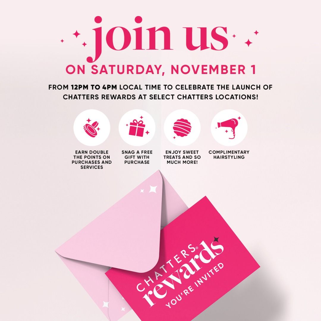 Mon, 20 Oct 2025 - Thu, 6 Nov 2025Join Chatters Rewards and you could win big! ✨ We’re giving away three Dyson hair tools and Chatters gift cards to lucky Chatters Rewards members 🩷 Sign up once for your automatic entry — and start earning rewards every time you shop your hair care faves!