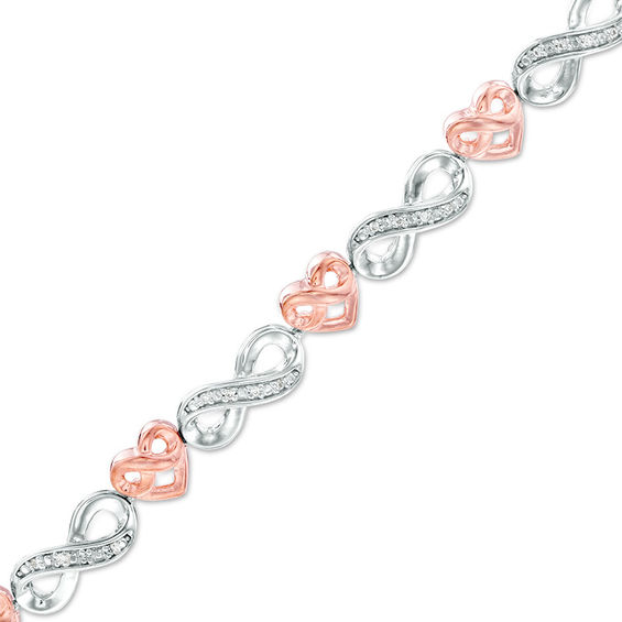 0.085 CT. T.W. Diamond Interlocking Infinity and Heart Bracelet in Sterling Silver and 10K Rose Gold - 7.5"