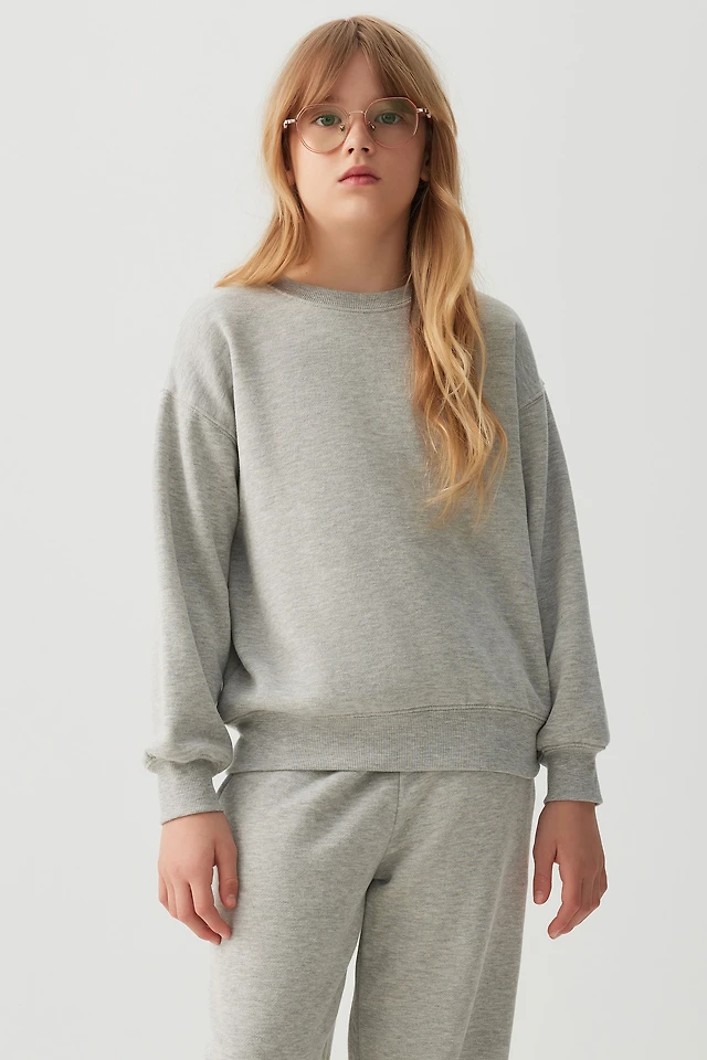 Ardene Kids Solid Crew Neck Sweatshirt in Grey | Size Small | Polyester/Cotton | Fleece-Lined