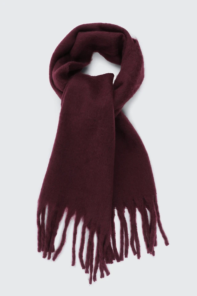 Ardene Rectangular Scarf with Fringes in Burgundy | Polyester