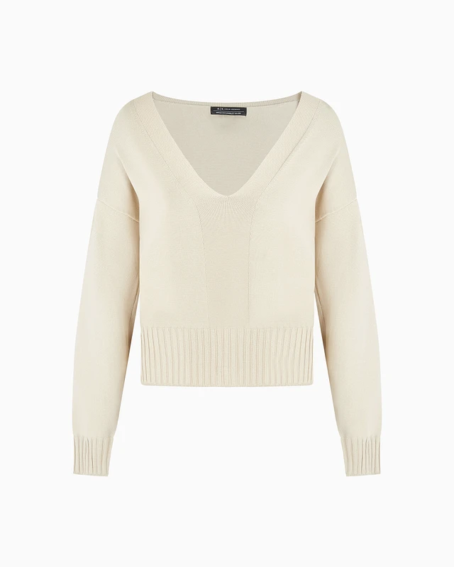 Armani Exchange - ASV Contrast Detail Sweater, Woman, Beige, Size: