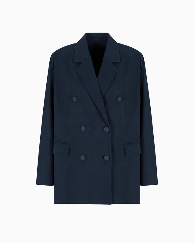 Armani Exchange - Double-breasted denim and twill jacket, Woman, Blue, Size: 4