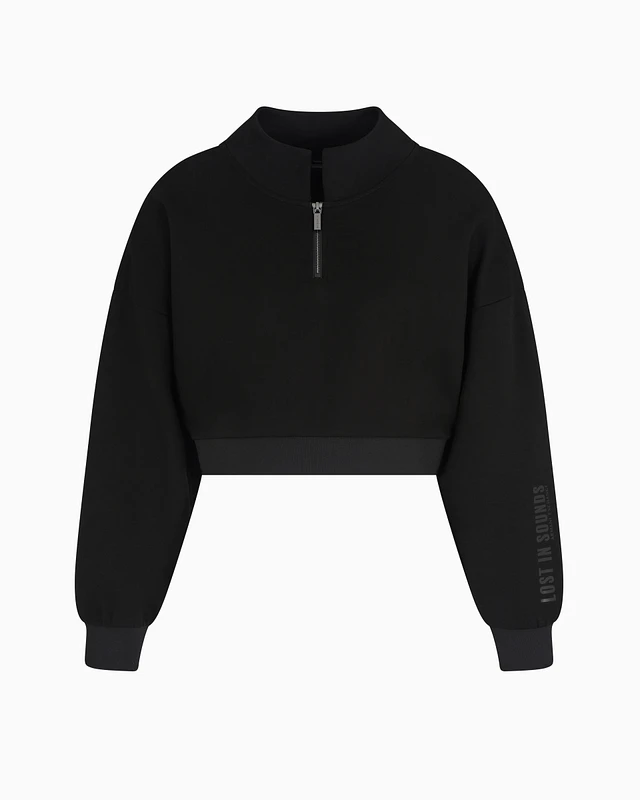 Armani Exchange - Lost Sound ASV cropped zip sweatshirt, Woman, Black, Size: