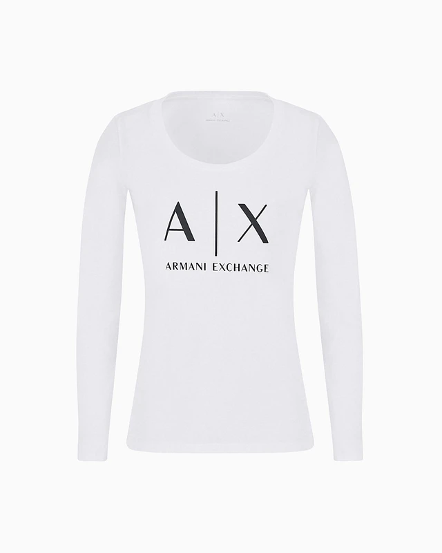 Armani Exchange - Pima Cotton Print Long Sleeve T-Shirt, Woman, White, Size: