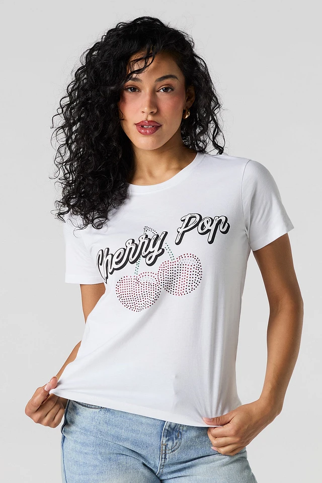 Cherry Pop Graphic Rhinestone T-Shirt