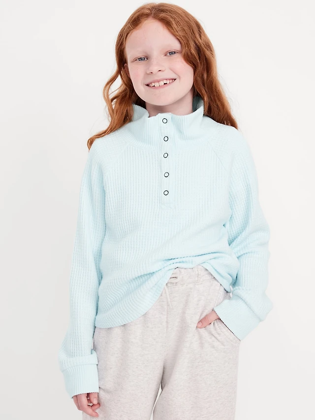 CozePlush Oversized Thermal-Knit Henley Top for Girls