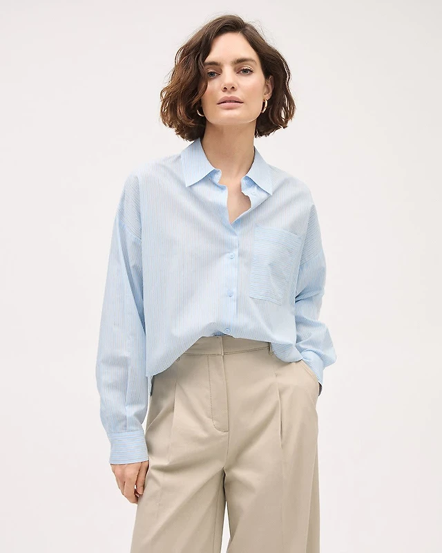 Long-Sleeve Buttoned-Down Poplin Blouse
