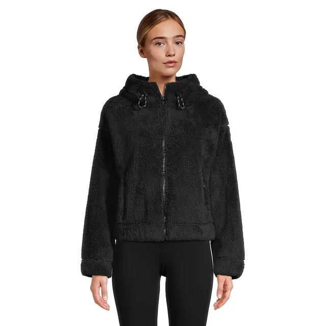Faux-Fur Zip-Up Cropped Hooded Jacket