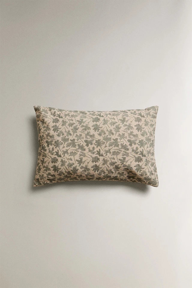 THROW PILLOW COVER WITH FLORAL EMBROIDERY