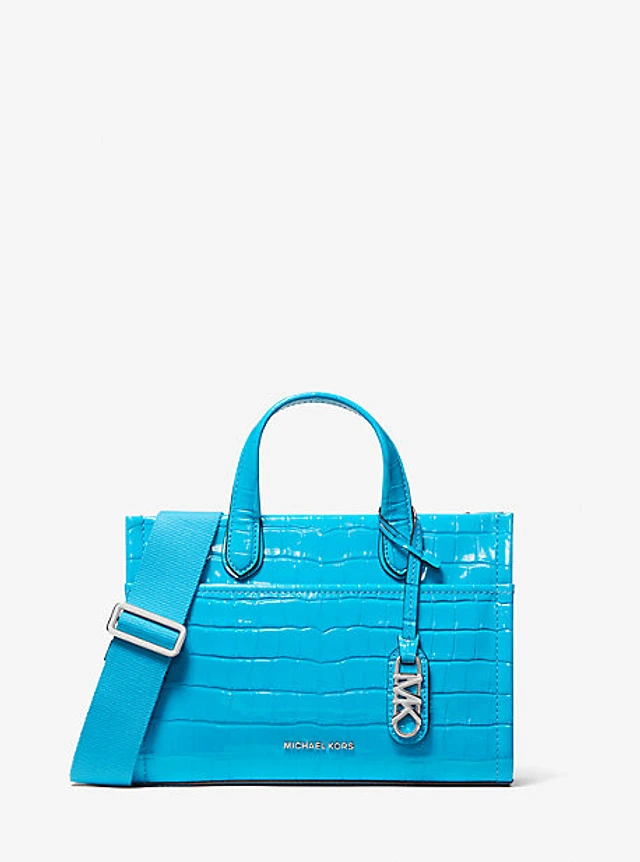Gigi Small Crocodile Embossed Leather Messenger Bag