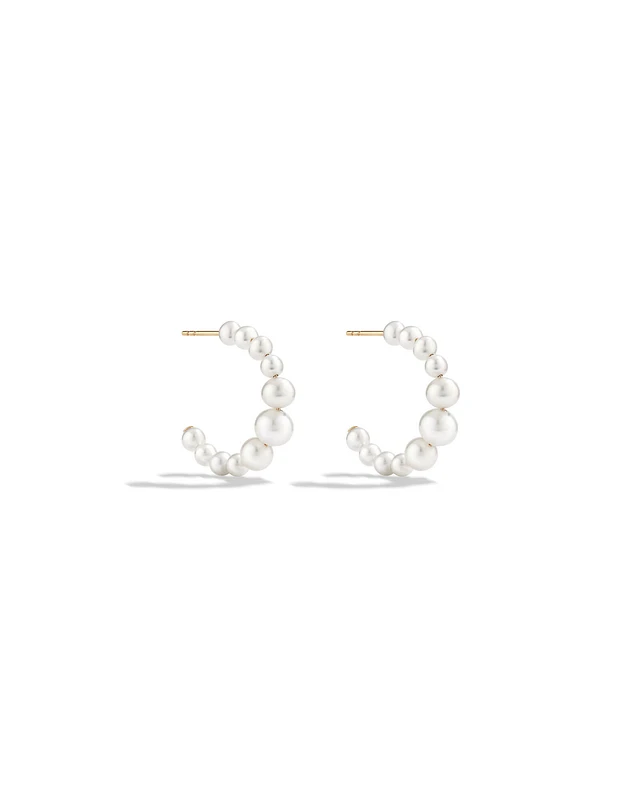 Hoop Earrings with Cultured Freshwater Pearls in 10kt Yellow Gold