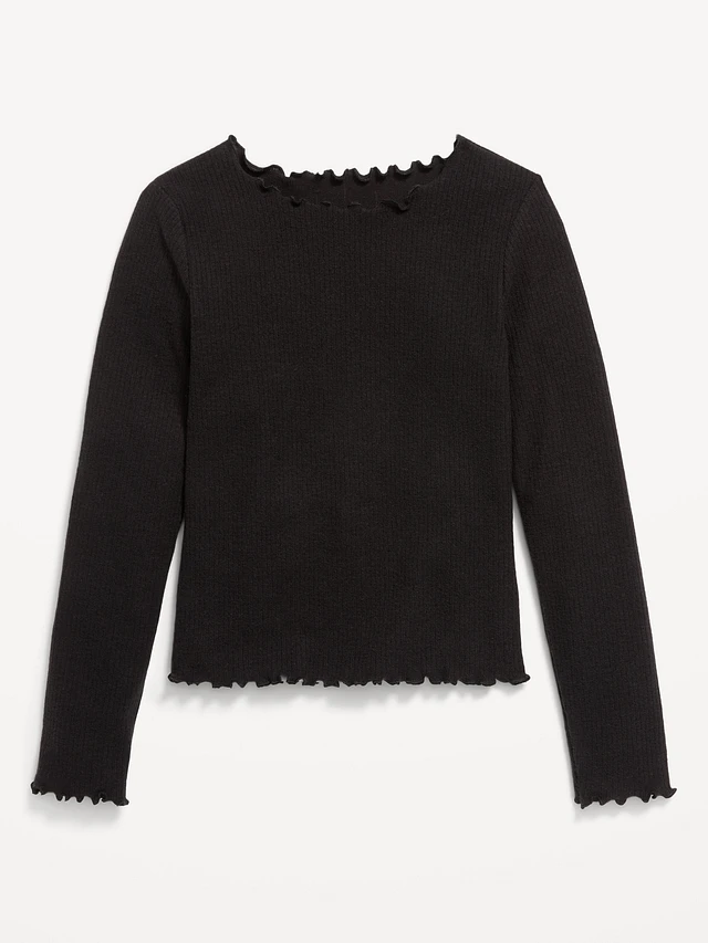 Long-Sleeve Lettuce-Edge Ribbed T-Shirt for Toddler Girls