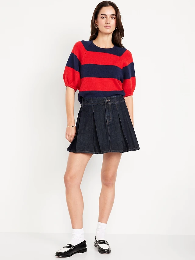 Mid-Rise Pleated Jean Mini Skirt