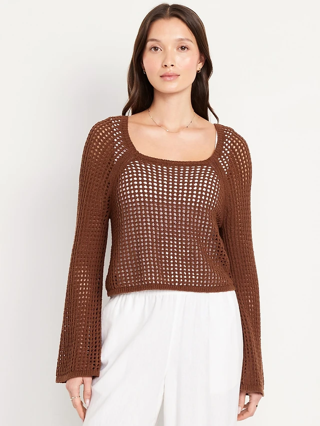 Ardene Crop Open Stitch Raglan Sweater in White | Size | 100% Acrylic