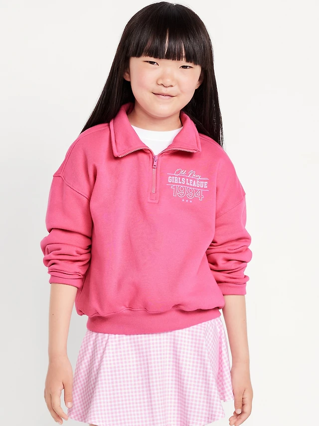 Oversized Quarter-Zip Graphic Sweatshirt for Girls
