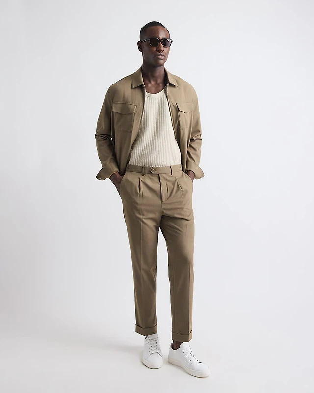 Wool-Blend Tapered-Leg Pleated Dress Pant