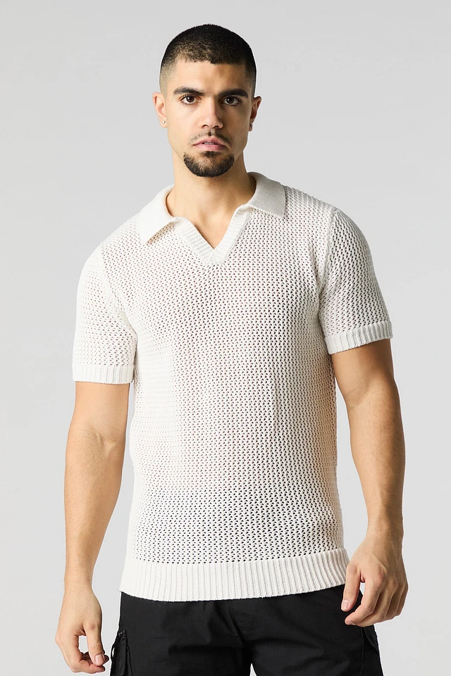 Polo en tricot ajouré avec motif de losanges pour garçon