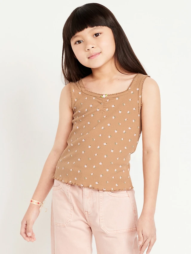 Fitted Ribbed Logo-Graphic Tank Top for Girls