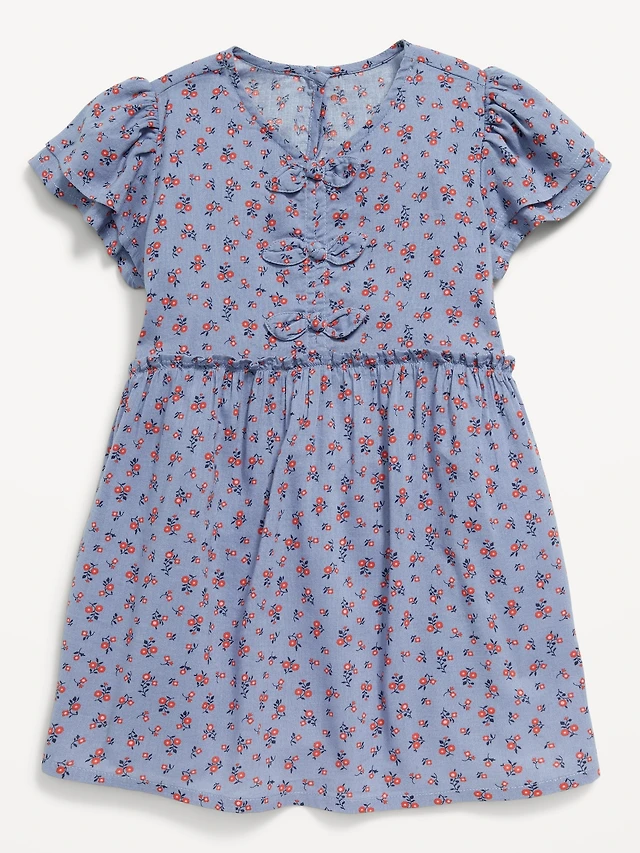 Printed Short-Sleeve Ruffled Bow Dress for Toddler Girls