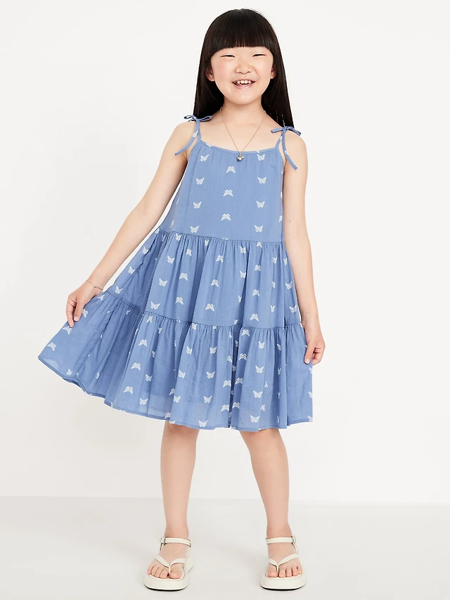 Printed Sleeveless Double-Weave Tiered Dress for Girls
