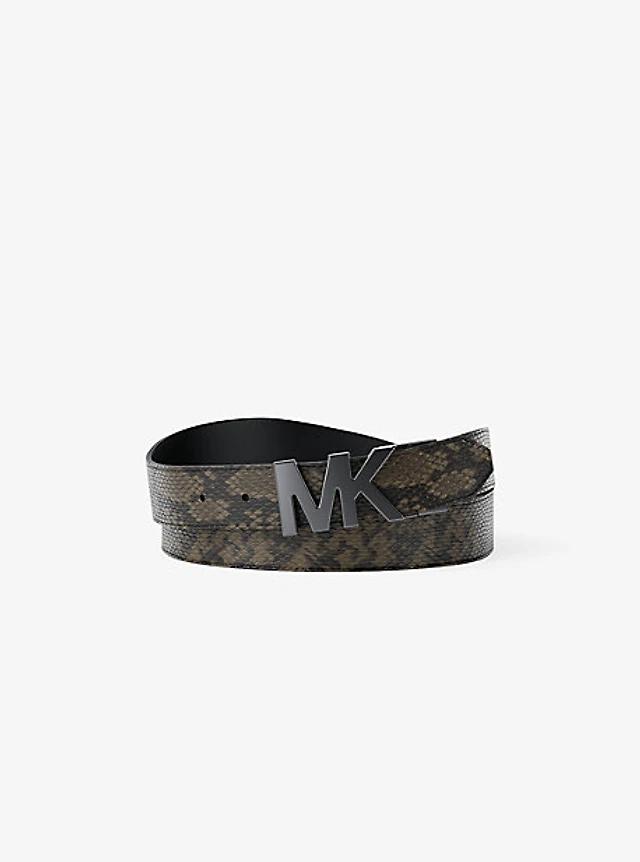 YSL Monogram Buckle Snake-Embossed Leather Belt
