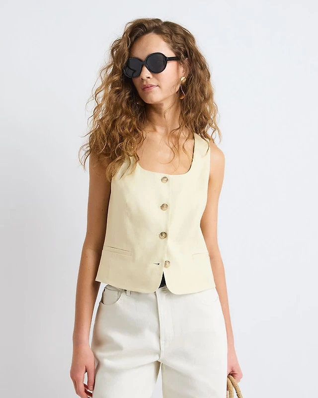 Linen-Blend Vest & Olivia Wide-Leg Pants