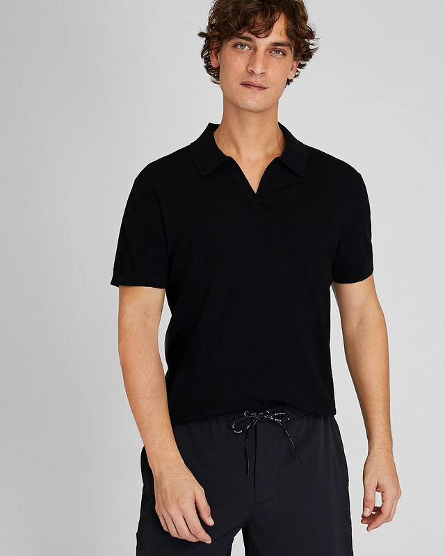 Long-Sleeve Textured Johnny Collar Knit Polo