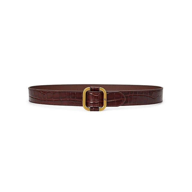 YSL Monogram Buckle Snake-Embossed Leather Belt
