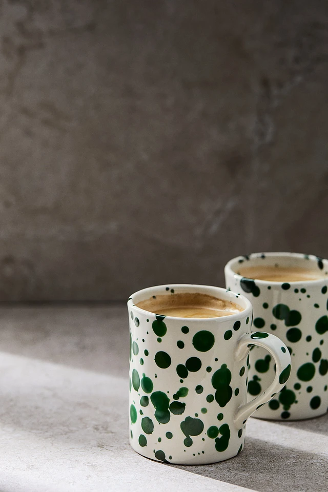 STONEWARE MUG WITH RAISED BORDER DESIGN