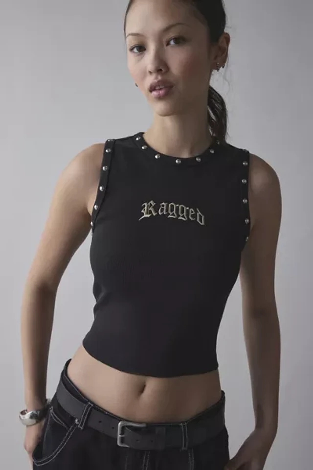 The Ragged Priest Embroidered Graphic Rivet Vest Top