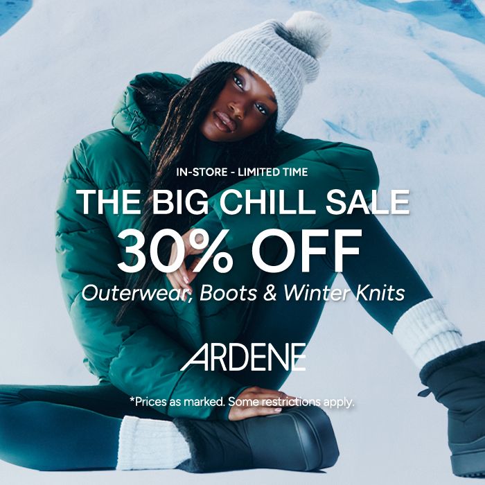 Wed, 29 Oct 2025 - Tue, 4 Nov 202530% Off Outerwear, Boots & Winter Knits. In-Store, Limited Time. *Prices as marked. Some restrictions apply. #ardenelove
