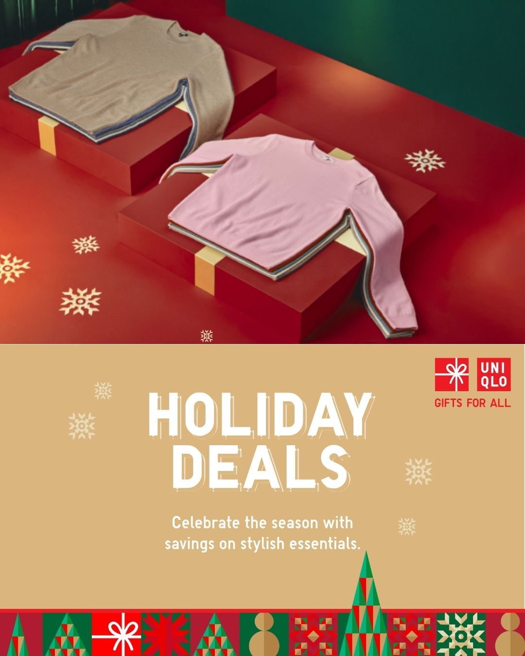 Fri, 12 Dec 2025 - Wed, 24 Dec 2025Give the gift of warmth and comfort with UNIQLO. Experience HEATTECH-our innovative thermal technology from Japan. Feel the softness of 100% cashmere sweaters and accessories and discover our premium yet affordable down jackets. Shop exclusive limited time offers this season, only available now!Find the perfect gift at UNIQLO - Winter essentials for everyone on your list.