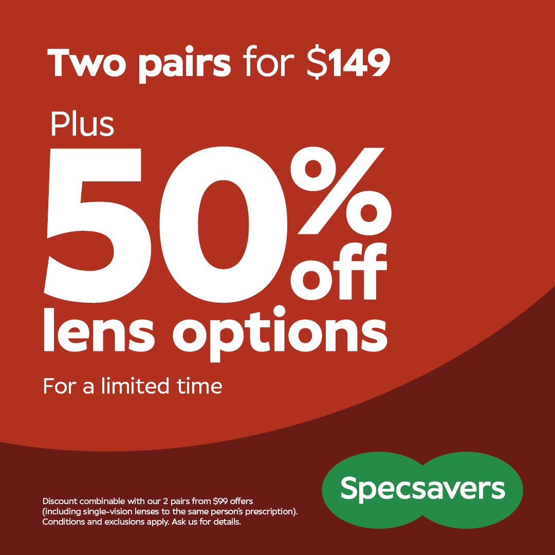 2025-12-17 - 2025-12-21For a limited time, get two pairs for $149, plus 50% off lens options to make your perfect pairs, for less. There’s a whole range to choose from to help tailor your glasses to your lifestyle, including: UltraClear SuperClean coatings: good for cutting down on annoying glare and reflections, as well as repelling smudges, fingerprints, water marks, dust and scratches, so your lenses stay cleaner for longer. Sun protection: perfect for sunny days — go for polarized lenses to ditch the glare or Reactions that cleverly adapt to light conditions. Thinner + Lighter lenses: a great choice for higher prescriptions, as they improve the comfort and look of your frames. Have you used your vision benefits yet? With us, depending on your plan, you can get two pairs of glasses from our $149 range or up to a year’s supply of contact lenses at no cost to you. Whichever you prefer! Don’t wait—head to your local store soon to take advantage of this limited-time sale, which ends on Sunday December 21. Terms and conditions apply.